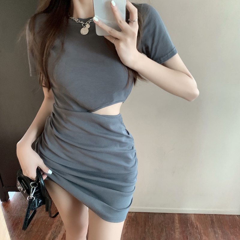 ▫️顏色-灰/黑 ▫️尺寸-F(有彈力) - 尺寸表 F-裙長 86 袖長 17 肩寬 36 胸圍76-100